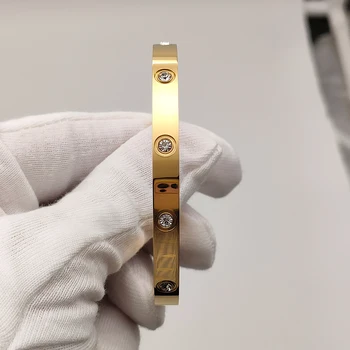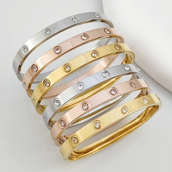 Wholesale Classic Jewelry Fashion Bangle Bracelet for Women with ZIRCONS 18K Gold Plated Stainless Steel Bracelet for Couples